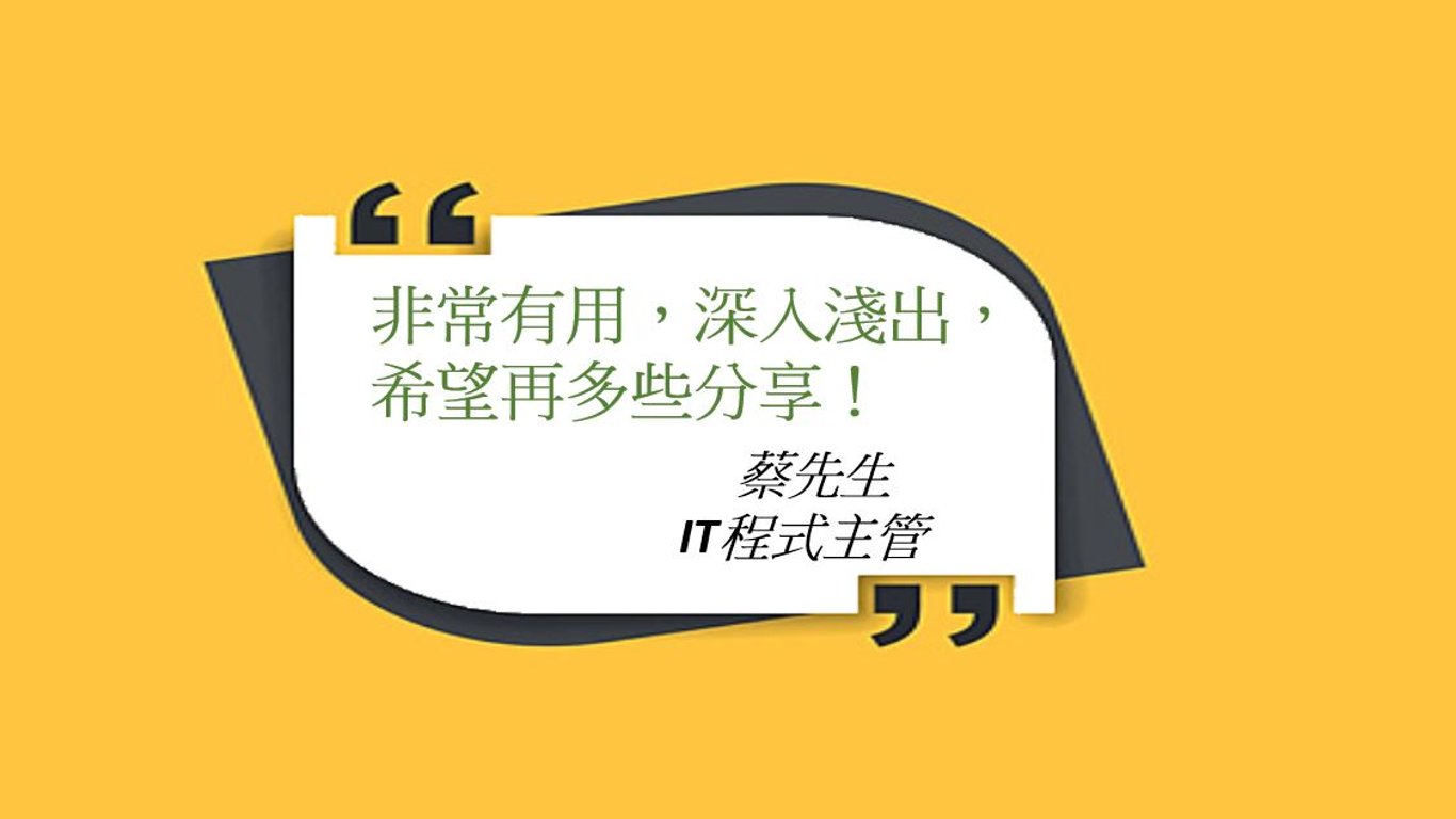 雖然網上有很多免費資源,但這些資源較零散,質量參差不齊,自學者往往要花費大量時間篩選和學習,有時甚至可能會學到過時或不適用的資訊。我們的課程由具資深的行業專家設計和授課,並擁有豐富的實戰經驗,能深入淺出講解知識,配上範例,讓學員能在短時間內能夠掌握技巧,即時應用,提高工作效率。此外,即時互動和個別指導,能即時解答學員的具體問題,這是免費資源所無法提供的。